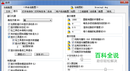 在“显示”选项卡中的“窗口元素”选项中点击“颜色”选项,进入“图形窗口颜色”对话框,界面如下图所示。