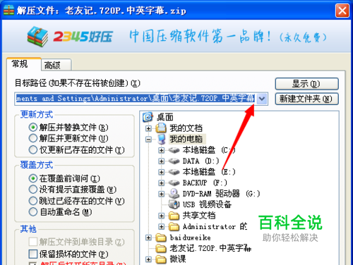 文件少的话可以选择直接解压到桌面
