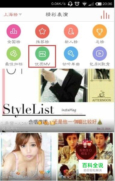 进入唱吧主界面后,选择 "优质MV"