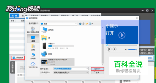 点击“添加视频”,弹出的窗口中选择需要编辑的视频,点击“打开”。