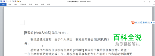 打开一个信函,这是一个辞职的信函,字体是简体的。