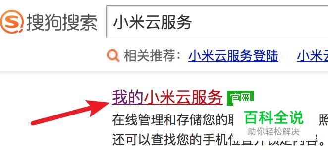打开搜狗搜索,输入‘小米云服务’,然后点击打开官方网站。