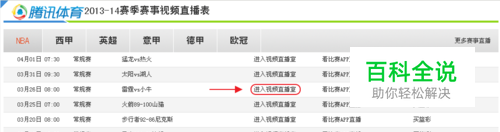 在打开的NBA直播页面,显示NBA比赛列表,包括比赛日期和球队名称等信息。选择需要观看NBA比赛,如图中所示点击“视频直播室”,进入视频直播室。