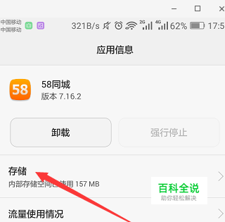 2.打开应用管理之后看到所有应用的界面,然后点击你的应用(例如:58同城) 点击进去,看到储存这一栏