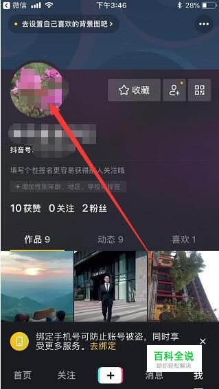 打开抖音,进入“我”的个人页面后,点击“个人头像”