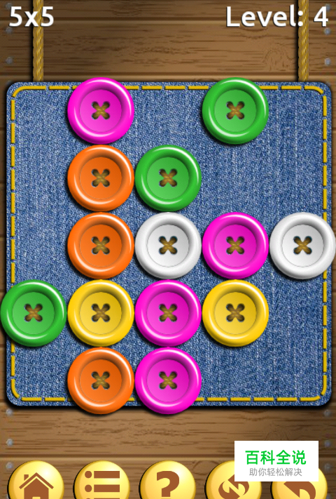 第六步:剪去最后两颗白色扣子,OK,第四关过了。