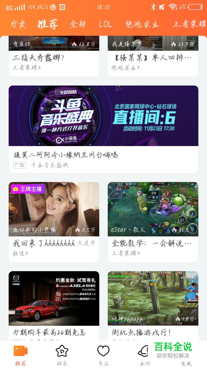 你可以在搜索框中输入你想看的主播或者看推荐里的直播,点击一个,如图1箭头所示。