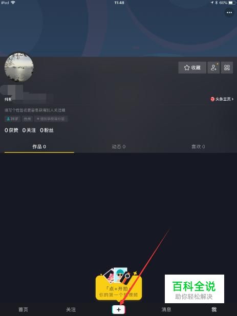 玩家想要找到小黄鸭的表情包,首先点击抖音页面底部的【+】。