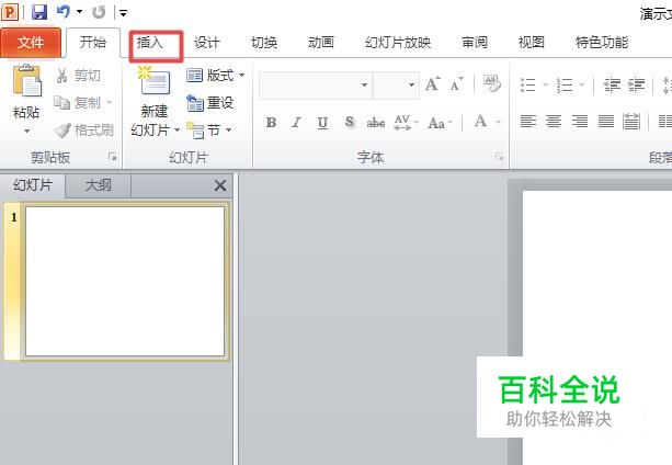 首先,我们打开我们的电脑,然后我们打开我们电脑上面的ppt,之后我们点击插入;