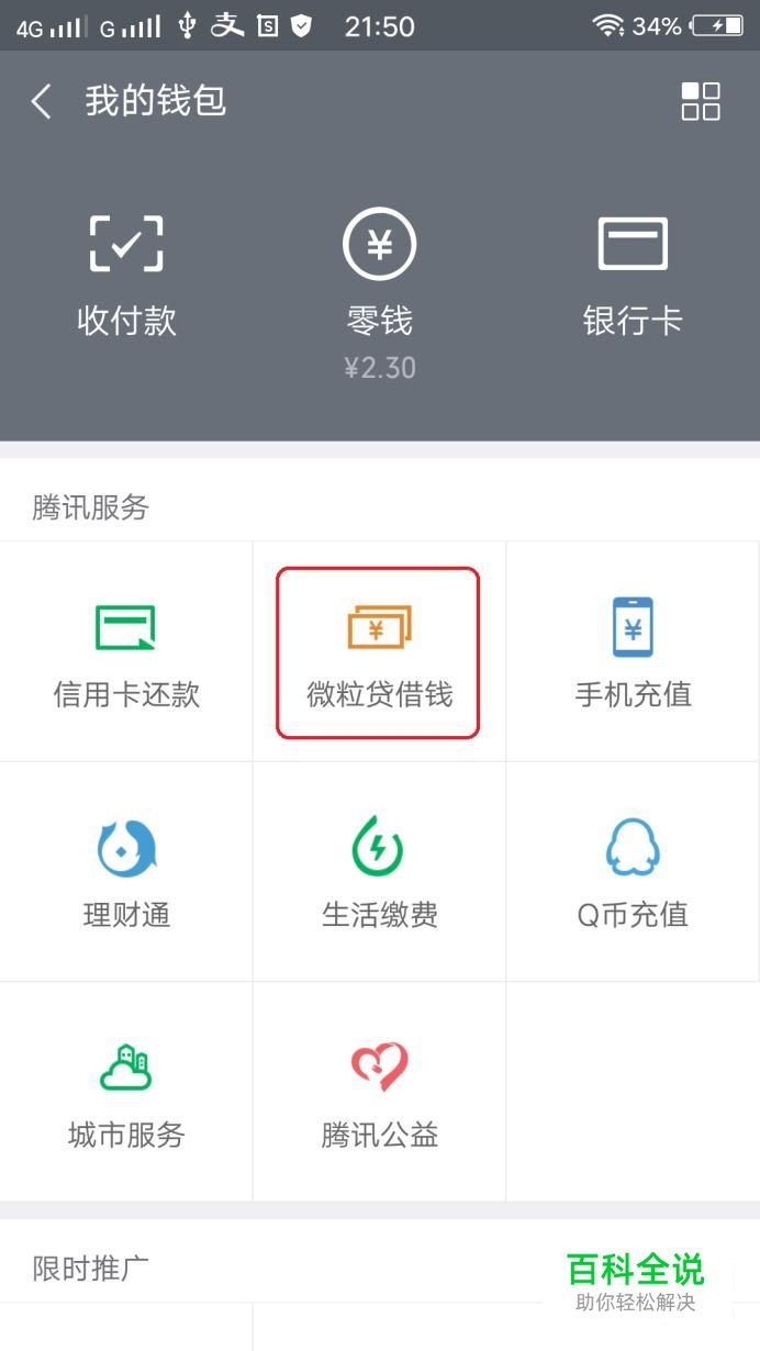 首先,我们打开微信钱包,点击“微粒贷借钱”图标。