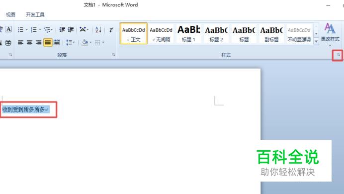 首先,我们打开我们的电脑,然后我们打开我们电脑上面的一个word文档,之后我们选中文档中的内容,之后我们点击图示中的箭头;