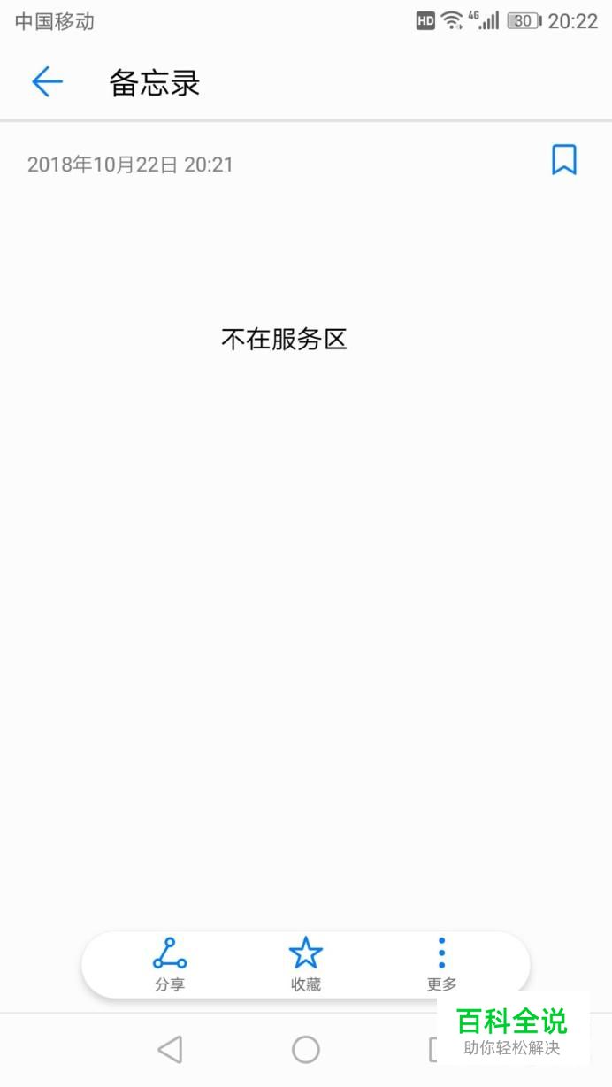 首先,打开手机备忘录,在文本中间位置输入文字,如“不在服务区”。