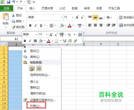 首先,我们打开我们电脑上面的excel,然后我们选中第一列,之后我们右击选择列宽;