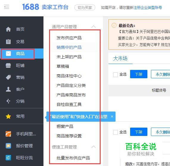 这样就可以进入阿里巴巴卖家后台页面,对自己的商品进行管理了。