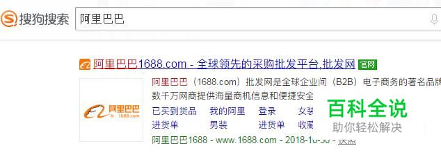 打开搜狗浏览器,在搜索框中输入“阿里巴巴”,点击阿里巴巴的官网进入页面。