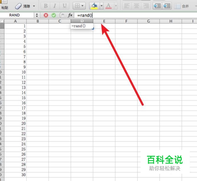 我们先在D1单元格上输入公式=rand()。