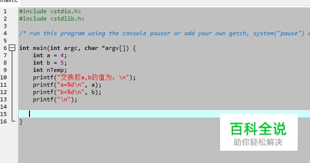接下来我们在C语言文件中声明两个数字并输出,如下图所示