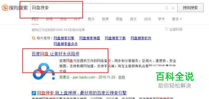 网盘搜索 在浏览器中输入【网盘搜索】,点击相关链接,如下图所示: