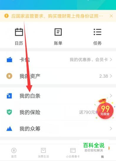 进入之后,选择“我的白条”,进入下一页面,如图所示。