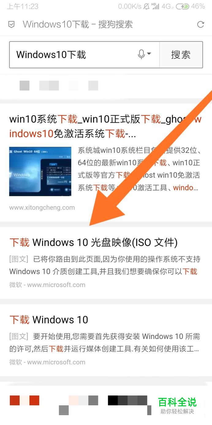 首先我们使用搜狗搜索“Windows10下载”,然后找到“微软 www.Microsoft.com”字样的下载链接,点击进入。