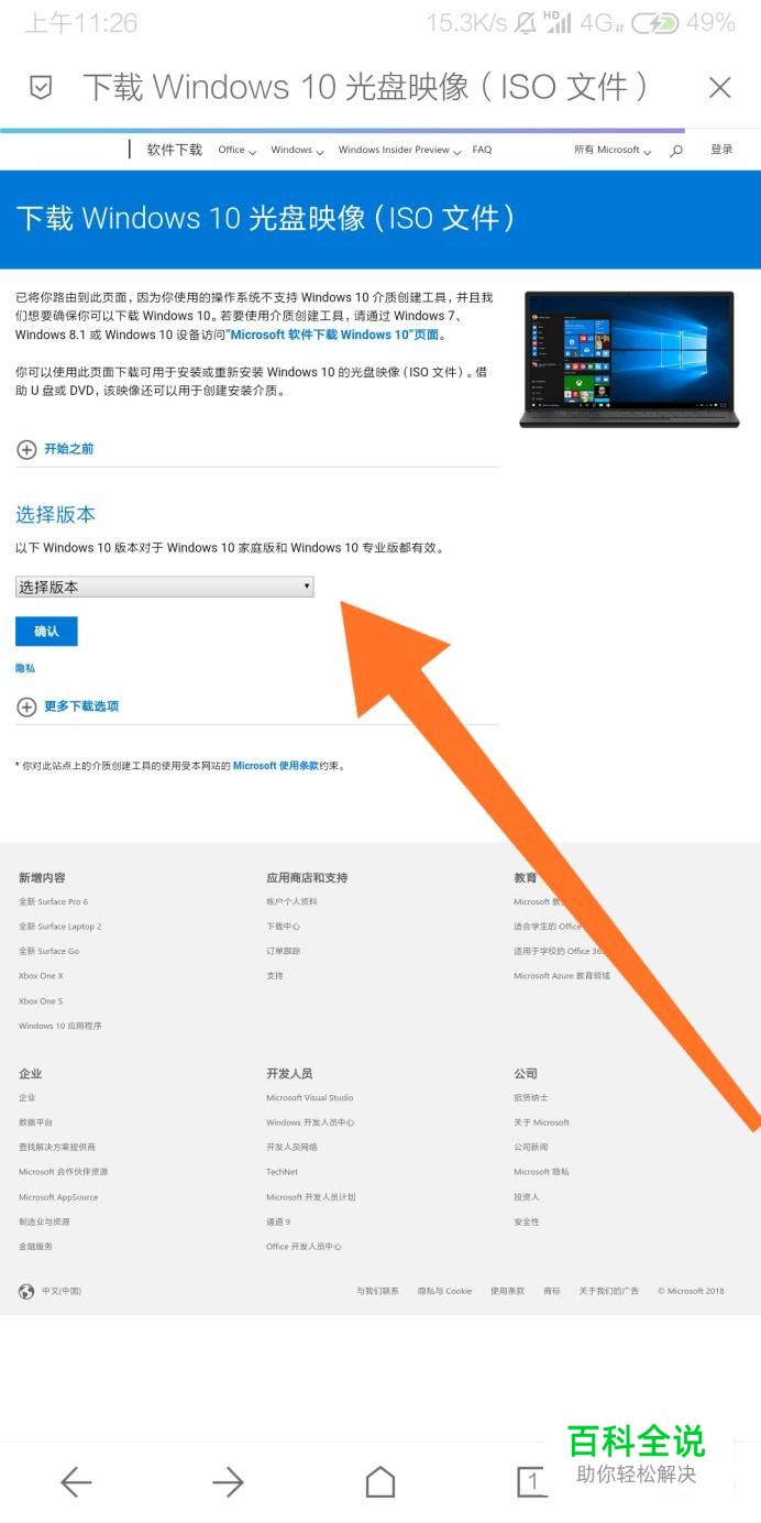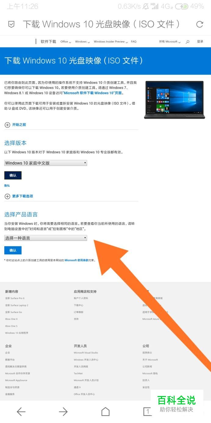 进入Windows 10系统下载页面后,先选择需要下载的Windows 10版本,在这里可以选择家庭中文版。