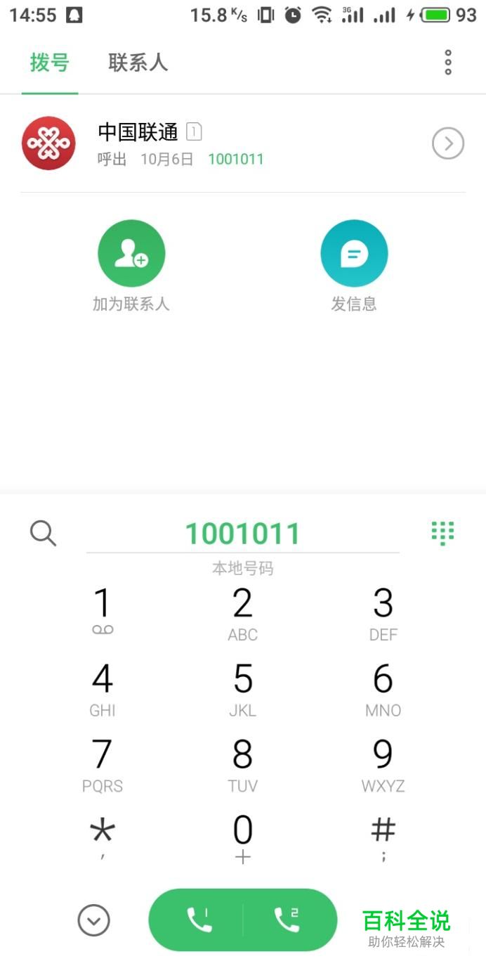 进入拨号界面之后,按键输入“1001011”拨号,然后选择相应的联通SIM卡进行拨打。