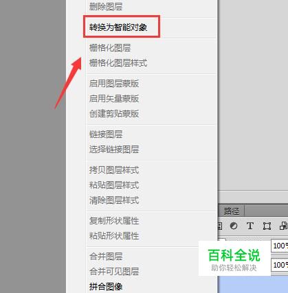 打开图片之后我们在图层里找到图片所在的层,然后单击鼠标右键在弹出的右键菜单里找到转换为智能对象选项,如图所示: