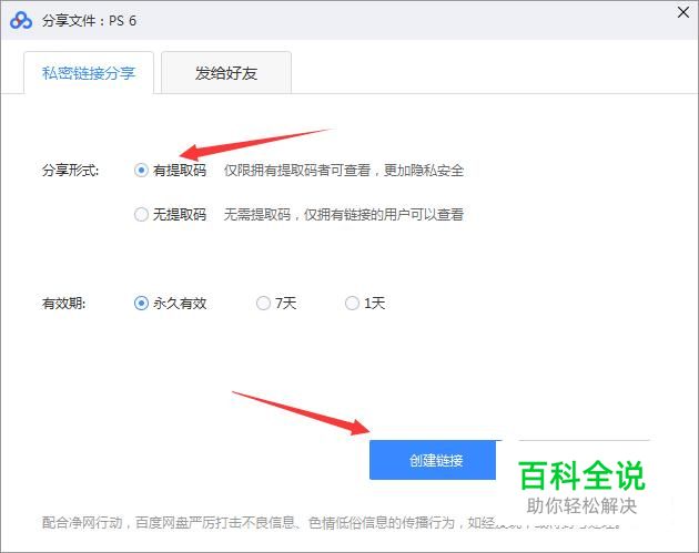 来到分享文件页面,我们选择私密链接分享,勾选有提取码,再点击下方创建链接