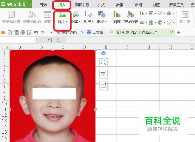 首先,我们打开一个空白的excel文档,然后点击“插入”,“图片”,把证件照插入文档中。