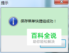 将右下角的“创建到”后面的三个方框都勾选,然后点击“生成菜单”,会弹出“保存菜单快捷组成功”的提示框。