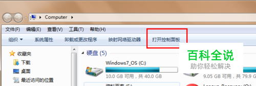 打开桌面上“我的电脑”,在打开页面上方,找到“控制面板”,打开它