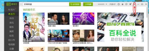 启动爱奇艺影音,点击选择程序界面右上角的【菜单】按钮。(如图所示)