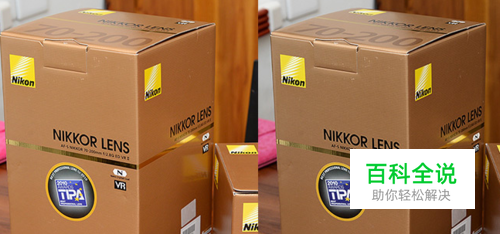 从下方的比较图中,可清楚看到,修正后的色彩更自然些,Nikon外包装盒,与原来的更接近,不像原先的色彩那么的艳。