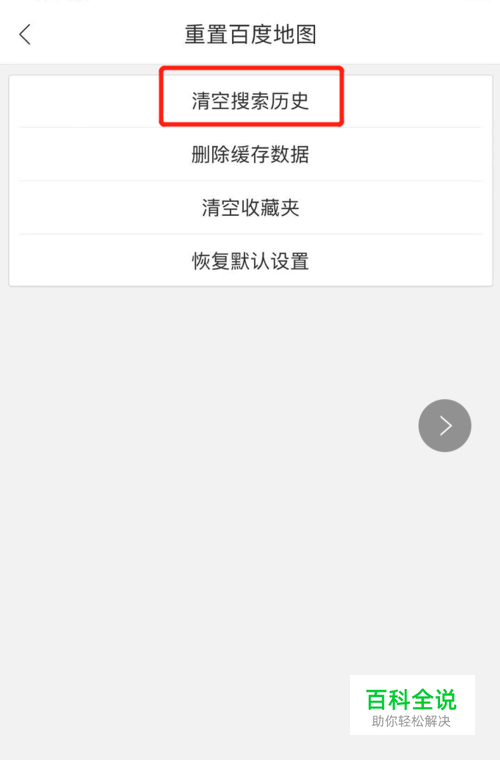 然后在重置百度地图的主页下,点击第一栏【清空搜索历史】,如图所示!