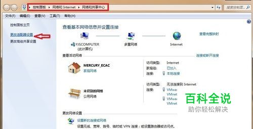 打开 控制面板\网络和 Internet\网络和共享中心,单击 更改适配器设置