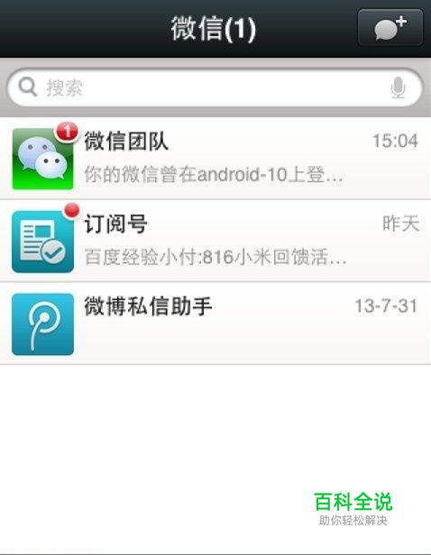 安卓手机的微信会话删除方法和iPhone的大同小异。同样进入“微信”界面,此时您看到了会话列表。