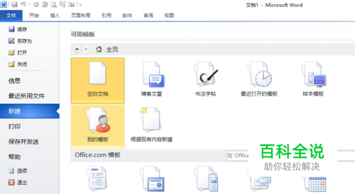 打开一个Word 2010文档,点击上方的“文件”选项,在左侧的选项中,再点击“新建”。