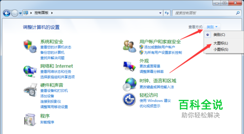 在打开的界面中,点击查看方式,点击大图标。