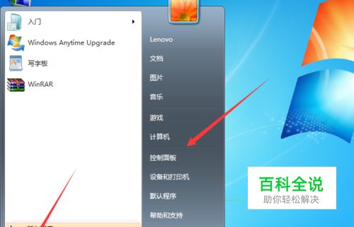 点击开始菜单,在菜单中点击控制面板。