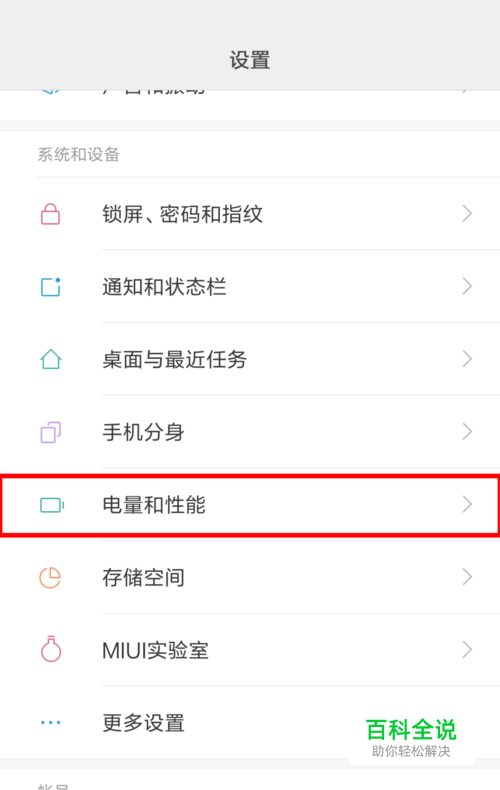 进入设置菜单,滑到下边找到【电量和性能】点进去。