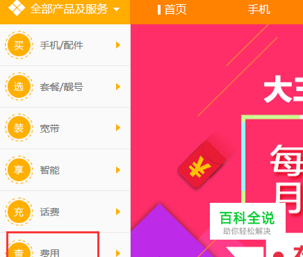 我一般选择用随机密码登录,免去我们总要记住密码的烦恼,登录进入后,选择左侧全部产品及服务的费用选项