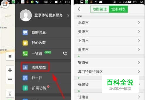 点击【离线地图】,在【城市列表】中选择省份【广东省】(如下图)
