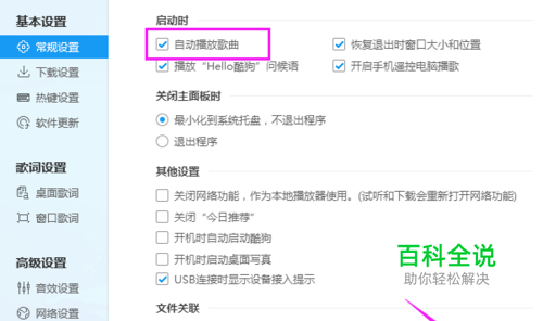 电脑上酷狗音乐如何设置启动自动播放歌曲