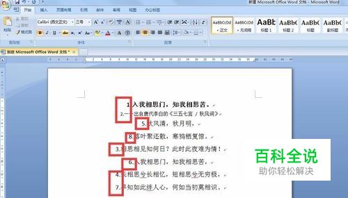 接着我们即可看到原先的诗词段落已经按我们标注的数字顺序按低到高排列好了