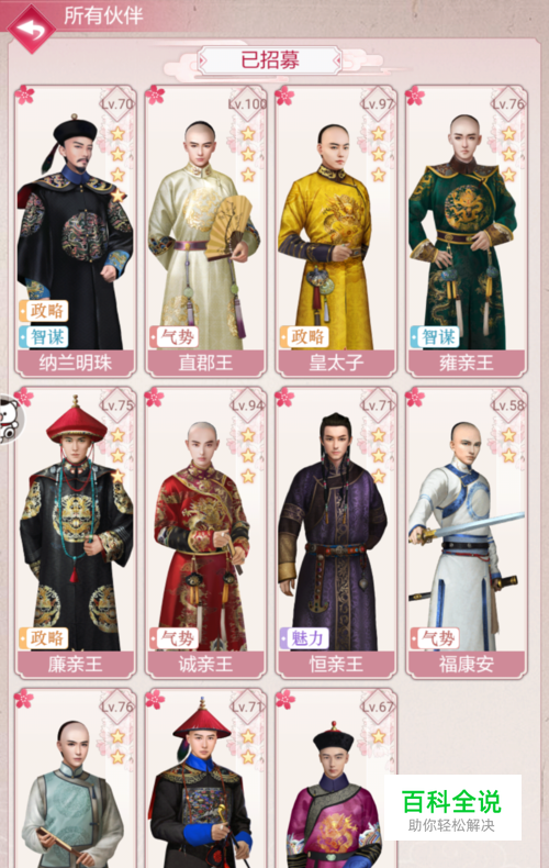 第二步:在伙伴界面,选择要设置为管事的伙伴,这里选择直郡王。