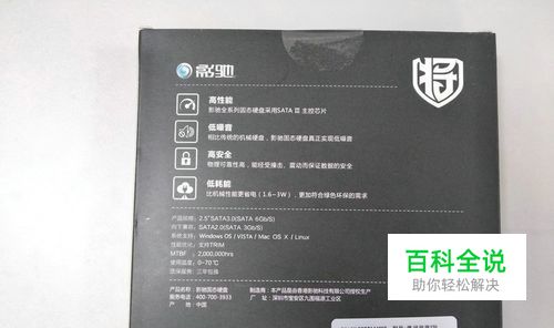固态硬盘本身的前面和后面和外包装的前面和后面版面非常相似,从后视图可以看到SATA3.0的接口。