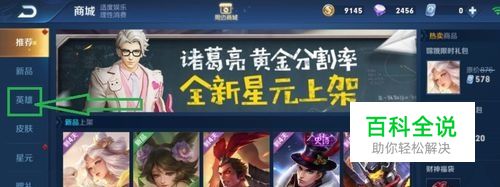 点击进入到游戏里的商城页面,在左侧的菜单中我们可以看到“英雄”。