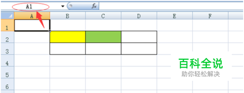 2、因此,黄色单元格名称为B2,绿色单元格名称为C2。