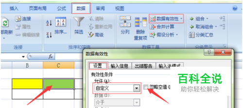 1、选中C2;依次点击:数据-数据有效性-设置-自定义-公式;输入公式:【=$B$3<>""】或【=NOT(ISBLANK($B$3))】;并将忽略空值的勾去掉。