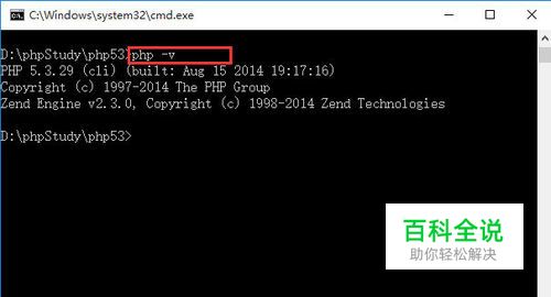 方法一:命令行查询 如果已经配置好环境变量,直接在命令行中输入php -v,将会显示php的版本信息。如果没有配置环境变量,直接在命令行中进入到php的安装目录后,再输入命令php -v,如图所示是我在安装目录下输入查询命令,可以看到输出的版本信息为PHP5.3.29。